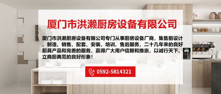 廈門市洪瀨廚房設(shè)備有限公司專門從事廚房設(shè)備廠商,集售前設(shè)計(jì)、制造、銷售、配套、安裝、培訓(xùn)、售后服務(wù),二十幾年來的良好廚具產(chǎn)品和完善的服務(wù),贏得廣大用戶信賴和推崇,以誠行天下、立商廚典范的良好形象!